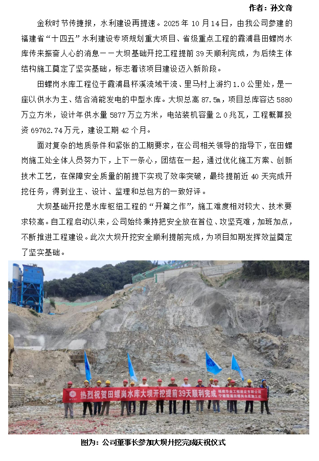 热烈祝贺福建霞浦县田螺岗水库大坝开挖施工完成